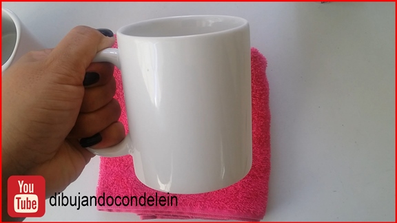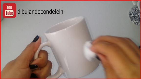 Para personalizar nuestras tazas de cerámica o porcelana primeramente nos debemos asegurar que la pieza en la que vamos a trabajar este bien limpia y seca, un paso adicional que yo tome para asegurarme que mi taza estuviera limpia y libre de grasa fue pasarle un algodón con alcohol y dejarla secar muy bien.