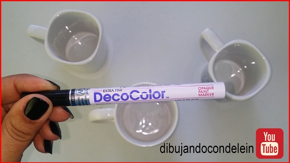 Como les dije, este es un proyecto super fácil, lo primordial es tener un marcador de tinta especial diseñado para permanecer en cualquier superficie, en éste caso yo utilice un marcador DecoColor y si he de ser honesta prácticamente lo compre por error o mejor dicho , yo fui a la tienda a comprar un sharpie y el vendedor me recomendó éste y me dijo que era ideal para trabajar en cerámica, pues, el vendedor no se equivoco jajaja