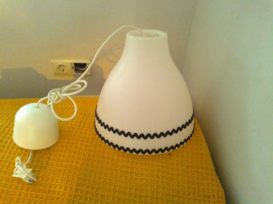 En el caso de la lámpara, está ya estaba pintada en blanca, solo te tuve que pegar la ondulina.