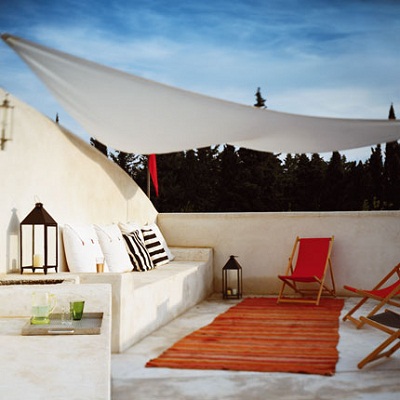 Ahora que hace calor, en pleno verano, podíamos cambiar un poquito nuestra decoracion, o podemos hacer uso de esa terraza que solo acumula polvo durante el invierno y ese pequeño balcón al que crees que no le puedes sacar ningun partido? hay tantas ideas, aunque casi todas comparten unas mismas pautas, colores claros o vivos, alfombras, velas, pufs, pequeñas mesas...todo aquello que nos invite a relajarnos y a pasar una velada tranquila y porque no, con olor a jazmin, lavanda o azahar, una música tranquila... :)