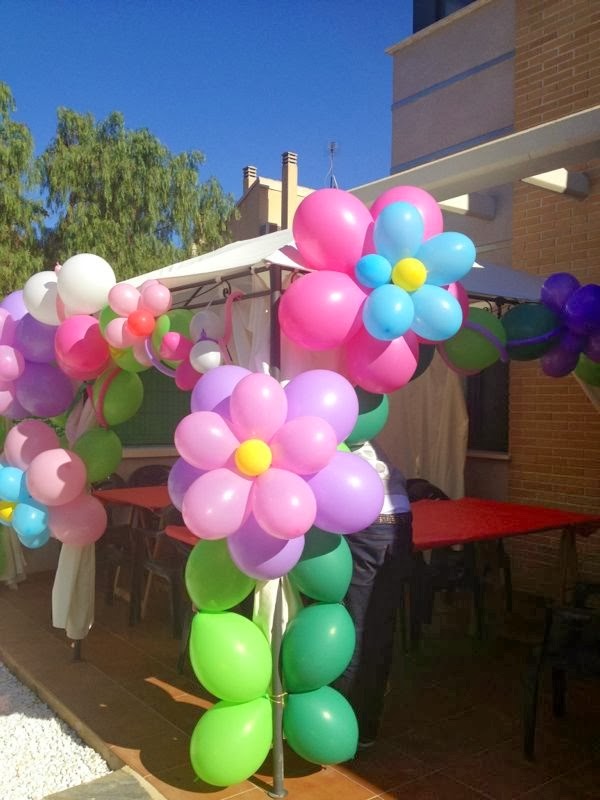 En este post realmente solo puedo aportar como ha quedado la decoración con globos que hemos hecho para el cumpleaños de mi amiga Ángeles, puesto que el como se elaboran las flores y las mariposas, he aprendido a hacerlo con tutoriales que hay en YouTube y que generosamente otras personas han aportado.