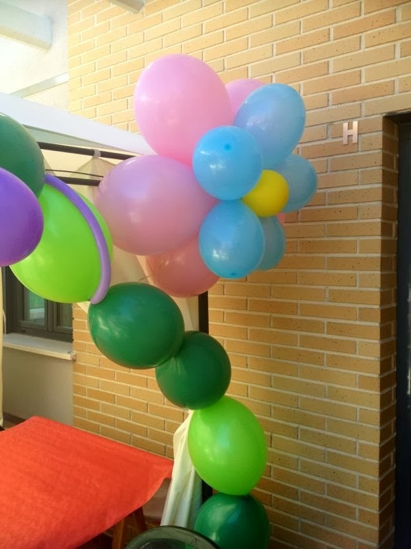 También entrelazamos algunos globos de modelar en el conjunto, para adornarlo un poco más