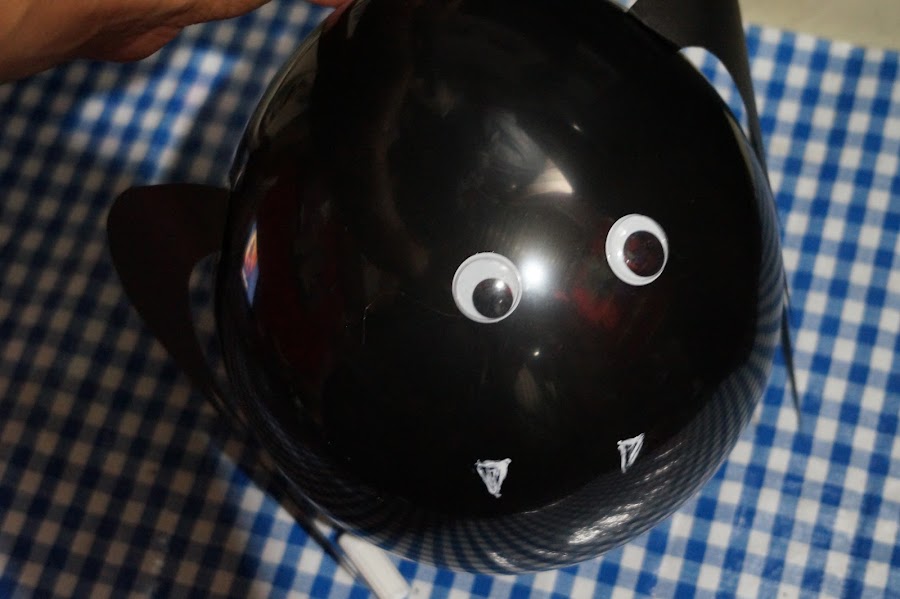 Y únicamente resta pegar los ojitos con silicon frío, así como dibujar sus colmillos con plumón o pintura blanca.