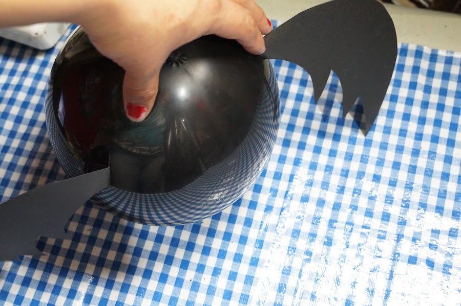 Pegaremos las alas al globo con cinta adhesiva