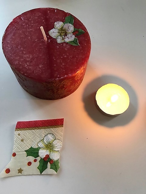 Lo primero escogemos una vela y una servilleta que nos guste para decorar.