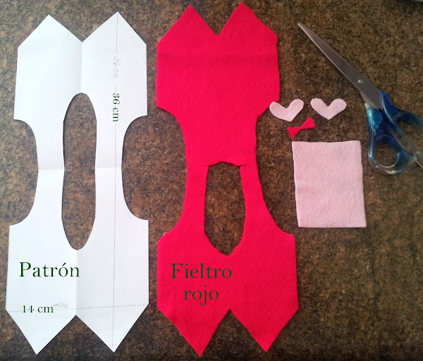 Mi propuesta es bastante sencilla, se trata de decorar con fieltro una botella reciclada. Los materiales a utilizar son: Fieltro rojo y rosado. aguja, hilo, tijeras.