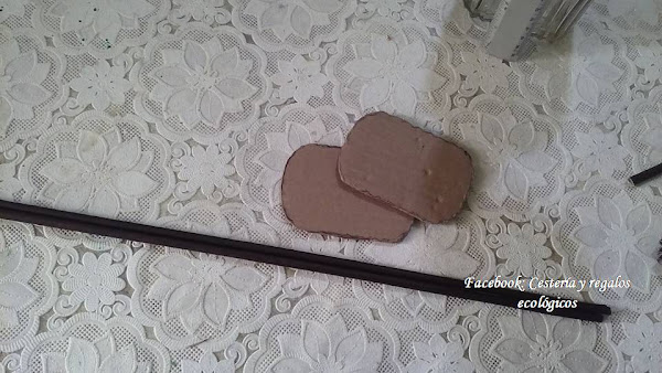 Para las flores, simulamos el tallito del medio con cotonetes o limpiadores de oídos, pero también podemos sustituir por ramitas secas...
