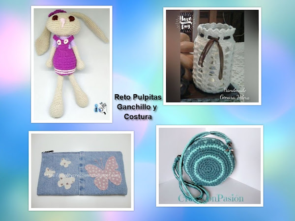 Y con todo cariño expongo este trabajo, con la finalidad de sumar ideas al Reto Pulpitas, que realizamos periódicamente y cuyo tema es: "Ganchillo y costura" nada mejor que desafiar las neuronas y darle chispa a la vida. Estas amigas son una maravilla y magnificas artesanas, hoy es un honor para mi, compartir post con ellas, aquí nuestras ideas: