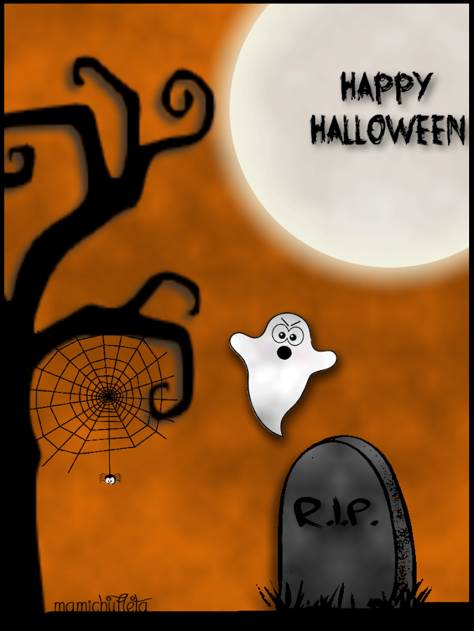 Y ahora sí, mi regalo de Halloween, estas dos postales (¿para ser las primeras que hago no están mal no?) para felicitaros a vosotr@s y que feliciteis a todo el mundo. Para descargarlas sólo tenéis que pinchar sobre ellas con el botón derecho del ratón y guardar la imagen. Las fuentes las he sacado de esta página y algunos de los dibujos con dingbats que he sacado de esta otra.