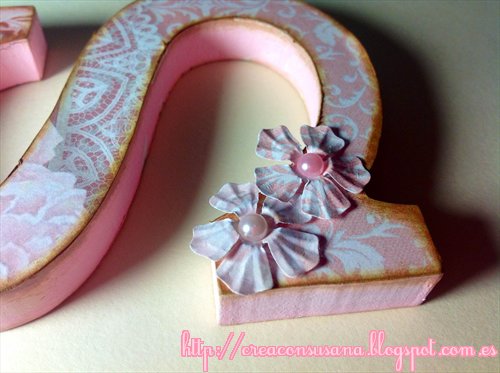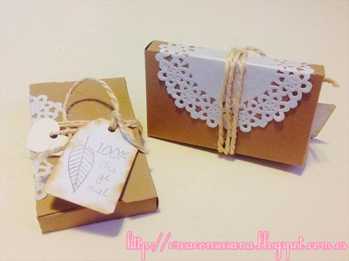 Para regalar las letras, les hice un cajita del mismo tamaño a las que añadí blondas y cuerda: