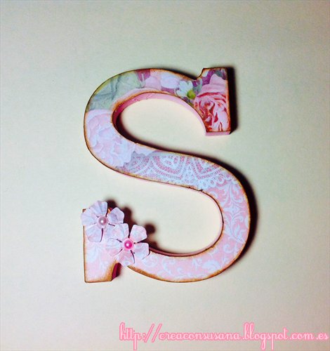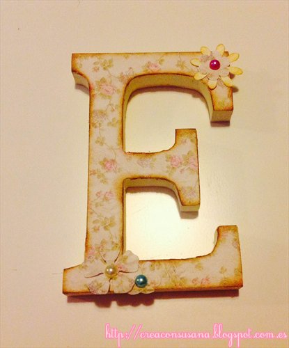 Por último, decoramos nuestra letra como mas guste, añadiendo botones, brads, Chipboards, Die cuts, cintas…