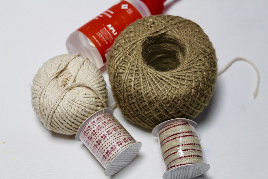 Con éste hilo de color crudo le quedaban genial las gemas, los lazos rojos y los motivos de la servilleta.