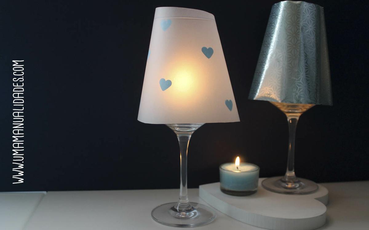 Para hacer las necesitaremos un poquito de papel vegetal y unas copas viejas, sacaremos la plantilla y realizaremos las pantallas de nuestras pequeñas lamparitas. Una vez tengamos eso listo, solo faltará añadir la vela y ¡voilà! ¡No me digáis que no queda precioso!