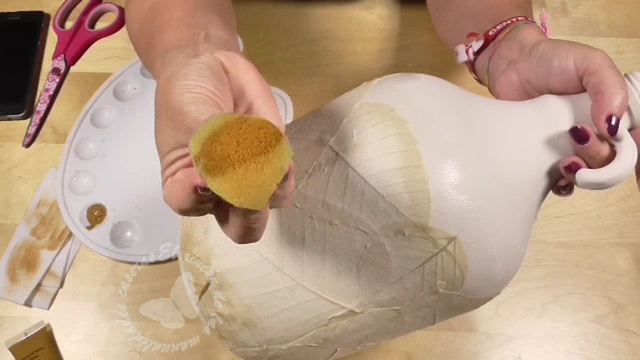 Lo siguiente que haremos será darle un toque envejecido con pintura marrón y aplicaremos la pintura con una esponja dándole toque, dejaremos secar y por último le daremos una capa de barniz en spray mate para proteger el trabajo.