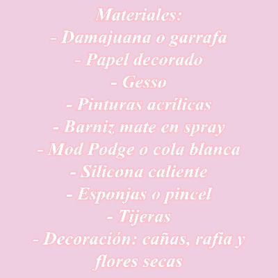 El siguiente paso ya es utilizar el papel y lo haremos con la técnica del decoupage, utilizando el adhesivo mod podge o cola blanca. Tomaremos la medida de la parte de la Damajuana que queremos decorar y recortaremos el papel, le aplicaremos la cola en el cristal e iremos rodeando la botella o garrafa y la dejaremos secar muy bien.