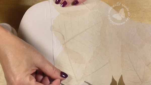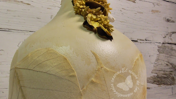 Es un papel entelado precioso llenito de hojas y como hoy precisamente es la entrada del Otoño mis musas y yo enseguida nos pusimos de acuerdo para darle vida junto a esta Damajuana.