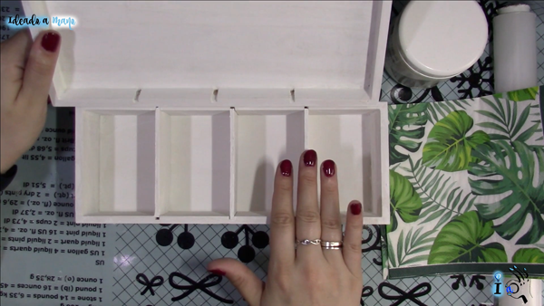Luego doy una capa de imprimación a toda la caja, tanto por dentro como por fuera, de color blanco porque luego voy a hacer decoupage.