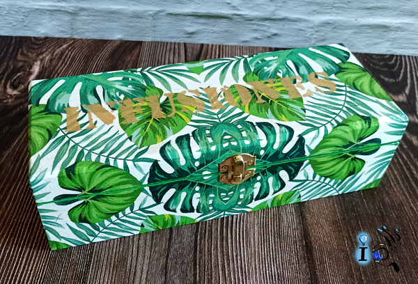Hoy os traigo una caja para guardar y ordenar las infusiones con un estilo muy tropical. Yo me he divertido mucho decorándola pero además es de lo más fácil.
