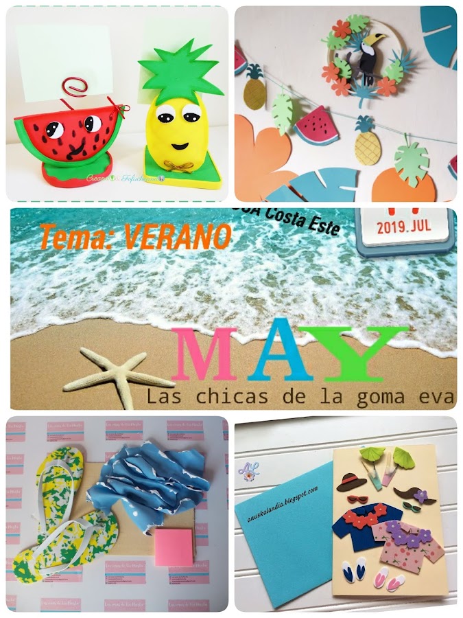 Ahora les cuento que MAY es un proyecto creado por tres talentosas chicas blogueras que cada mes se unen para presentar algún trabajo o manualidad hecha en goma eva sobre una temática en concreto. Como ya saben este mes fue verano y he sido su invitada especial, pero que sepan que cada tercer miércoles del mes hay una cita con estos talentos.
