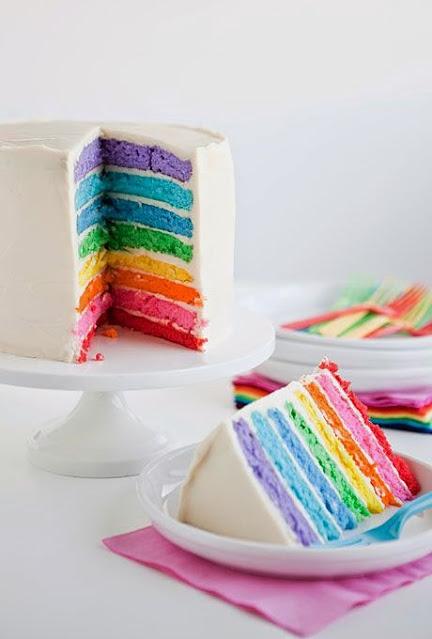 Aunque no me importaría para el próximo cumpleaños tener la tarta multicolor como esta.