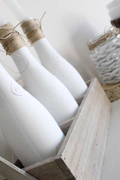 3. Decoramos el caño de la botella con cinta de esparto y cordel.
