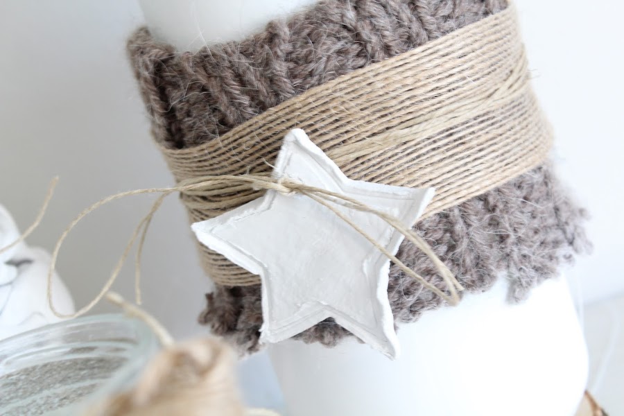 El tercer DIY Porta Vela lo decoraremos con elementos naturales: lana, cordel y pasta de modelar. Para que tenga concordancia con el resto del conjunto.
