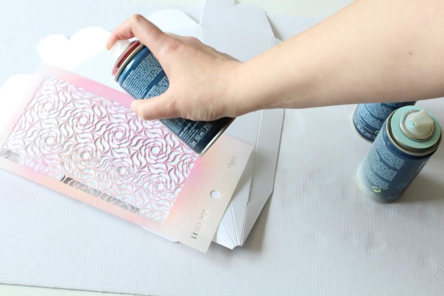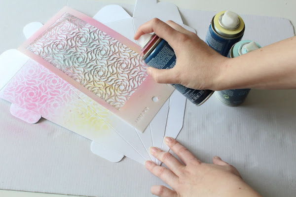 El desafío consista en crear la decoración del evento con el Kit sorpresa que me envió Selfpackaging, cuando vi la selección de cajitas se me ocurrió hacer un estampado con los colores del evento, para ello utilice los sprays Aqua de Novasol, ya que los colores me encajaban a la perfección: Rosa, Turquesa y Amarillo.
