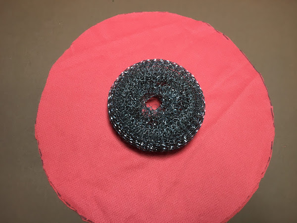 Elige la tela y dibuja un circulo tres veces más grande que el aluminio.