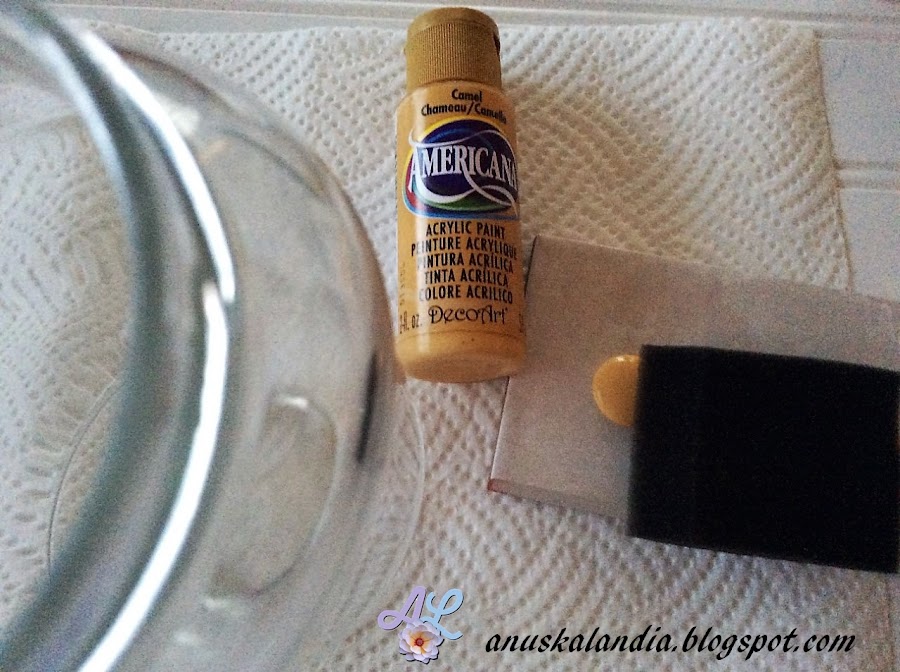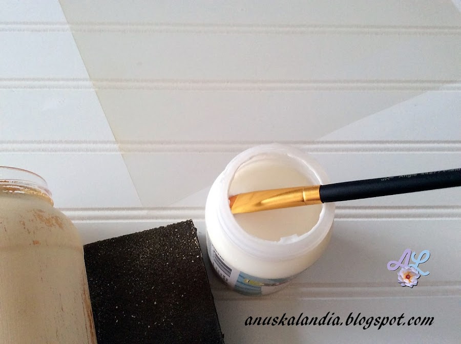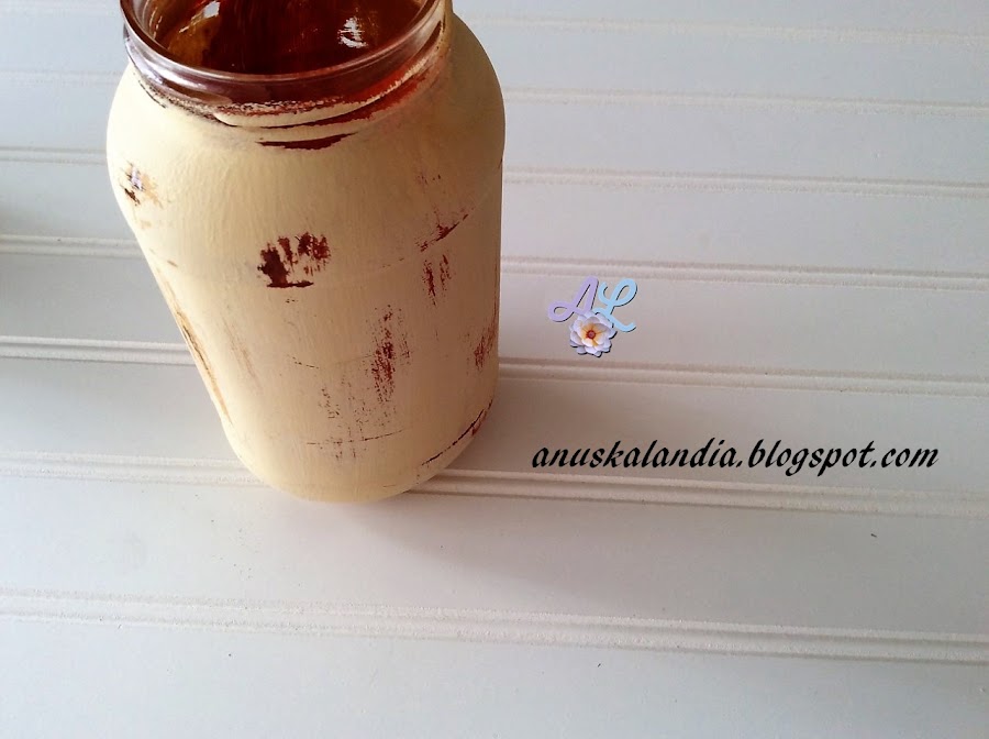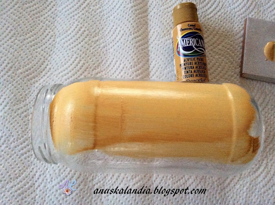 3.- Pintamos ahora toda la superficie del frasco, del color claro de nuestra elección, en mi caso de crema de leche.