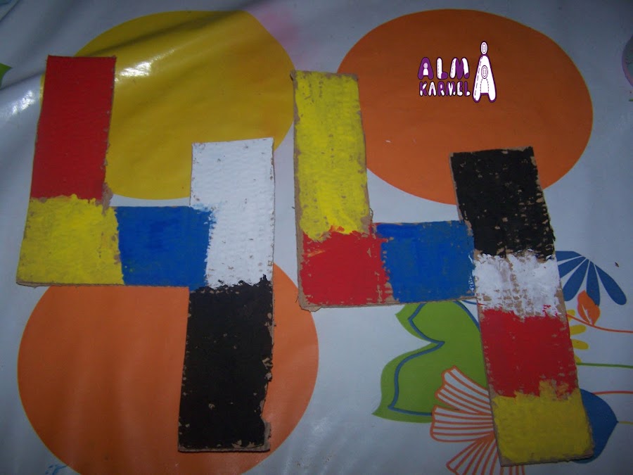 como en ocasiones anteriores, mi niña demuestra que le gusta la variedad de color, y cada trozo lo pintó diferente, siendo el resultado final este