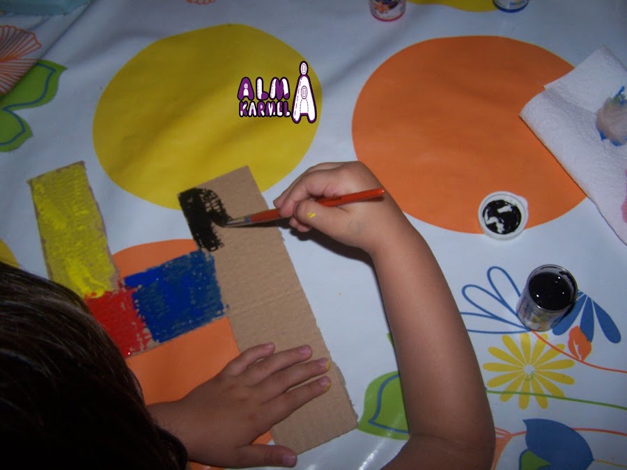 El proceso fuel el mismo, primero recortar el número en el cartón, y preparadas con nuestros pinceles, témperas, vasito de agua y papel para limpiar, nos pusimos manos a la obra.