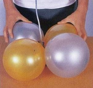 Unir con hilo nylon un cuarteto de globos,distribuye el color de la siguiente manera,un globo dorado,un globo plata ,uno dorado y plata.
