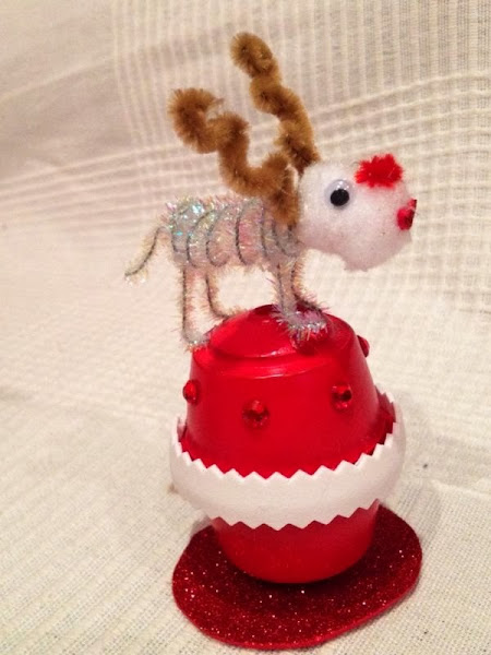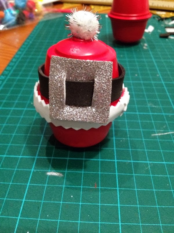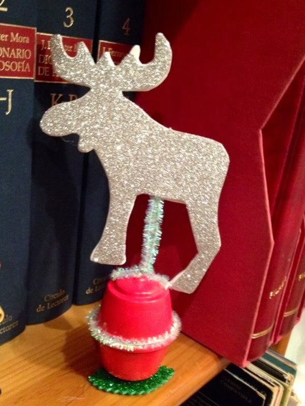 Decoración navideña utilizando restos de "de todo": Goma eva, limpiapipas, pompones, cápsulas dolce gusto (recicladas!! las he pintado con pintura en spray roja y hacen unos soportes estupendos, hay que cortar con un cúter una de las partes superiores de la capsula para que asienten bien, y se mantenga "de pie" el adorno), lentejuelas, pompones.... y a partir de ahí hay que ponerle imaginación, la ardilla y el arce están dibujados con un cortapastas (para galletas) navideño, los pinos llevan un soporte que es un cono de corcho, y con pegamento caliente vamos pegando los limpiapipas.