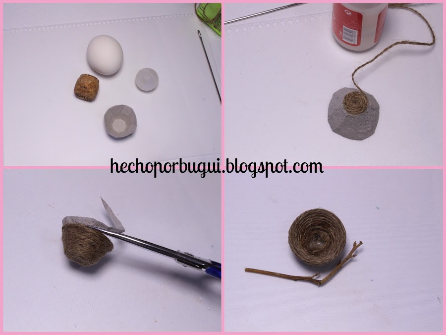 Para el nido pegué la cuerda con silicona, tanto por la parte exterior como por la interior. Y ésta si fue complicada....