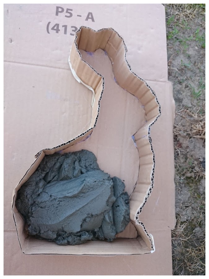 Ir rellenando poco a poco el molde de conejo con el cemento, poquito a poco y con mucho cuidado.