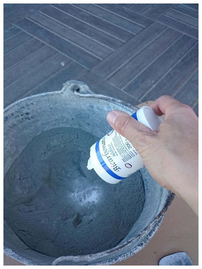 Un poco de bicarbonato sódico, este es un pequeño truquito, para que el cemento fragüe antes y