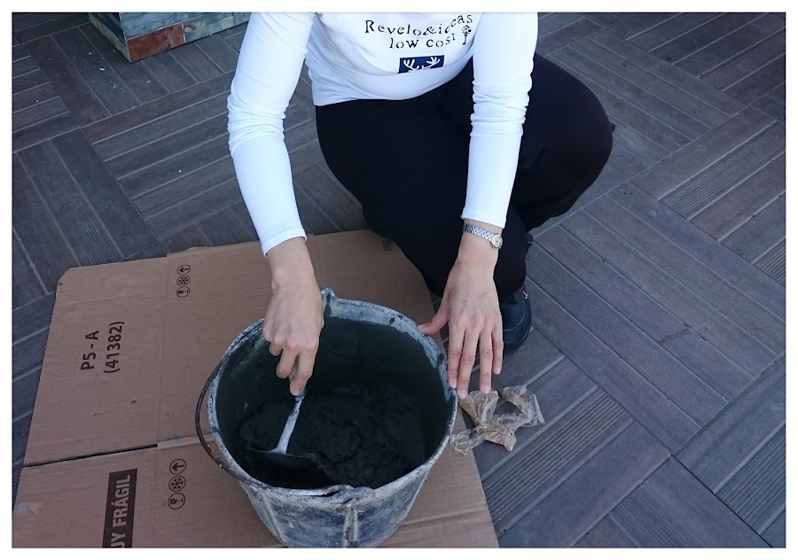 Mezclar todo muy bien dentro del cubo, removiéndolo utilizando una paleta, o una