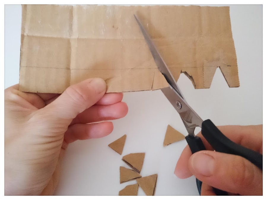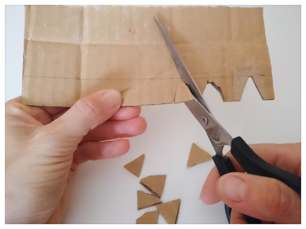 marcar una linea con 1`5 cm. e ir cortando pequeños triángulos en el cartón como los de la imagen.