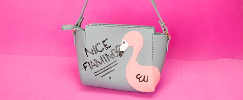 Por último escribimos una frase bonita en la bolsa con una pintura textil. Y ya tenemos termindada nuestra bolsa flamingo en menos de 20 minutos.