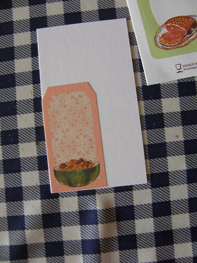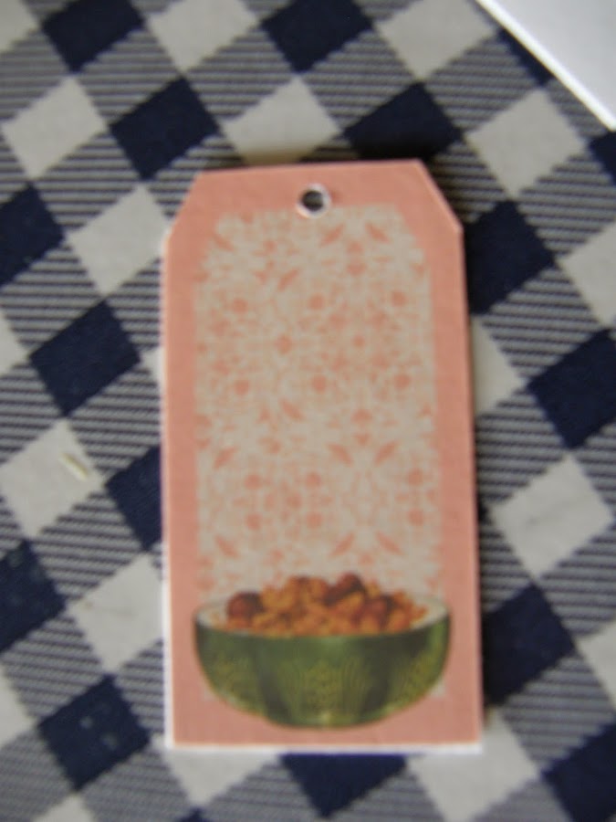 Pegue una etiqueta con forma de tag en una cartulina recorte y le hice un agujerito