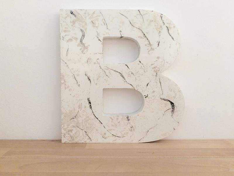 4. El transfer: es quizás la técnica más compleja de las cuatro, no por la dificultad de los pasos, sino porque se requiere de cierta delicadeza para conseguir un buen resultado. Se trata de transferir una imagen impresa a una superficie. Para ello, tendremos que imprimir la imagen, pero invertida, con una impresora láser. A continuación, aplicaremos gel medium, que es el producto que facilitará la transferencia, sobre la superficie de la letra (que previamente habremos pintado con el color base deseado), y colocaremos la imagen encima, evitando la formación de bolsas. Cuando haya secado, iremos humedeciendo y, con ayuda de los dedos o una esponja, retiraremos el papel.