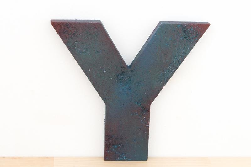 2. El craquelado: se trata de una técnica empleada para conseguir un efecto rústico y envejecido, ya que consiste en imitar las grietas que, con el paso, van apareciendo en la pintura. Para hacerlo se necesitan dos pinturas de diferentes tonalidades y un producto craquelador. De este modo, comenzaremos aplicando una primera capa sobre la letra y, cuando haya secado, aplicaremos el producto craquelador. Por último, aplicaremos encima el segundo tono, y observaremos cómo, al entrar en contacto con el craquelador, empezarán a aparecer las grietas, dejando ver el color de la primera pintura.