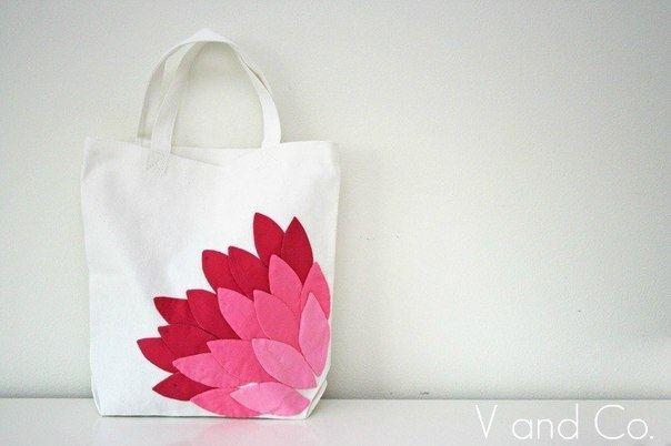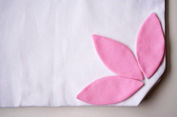 Acomodamos los pétalos en la esquina de un bolso de tela y los cosemos con hilo y aguja.