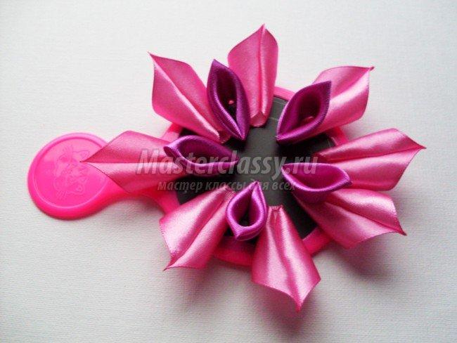 Así quedó la decoración del espejo con los pétalos Kanzashi.