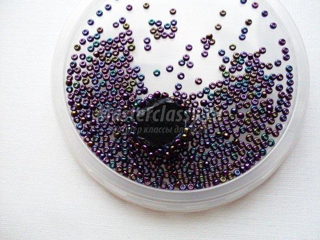 El centro de nuestra flor vamos a elaborar pegando a un pequeño círculo de fieltro las mostacillas o chaquiras de vidrio.