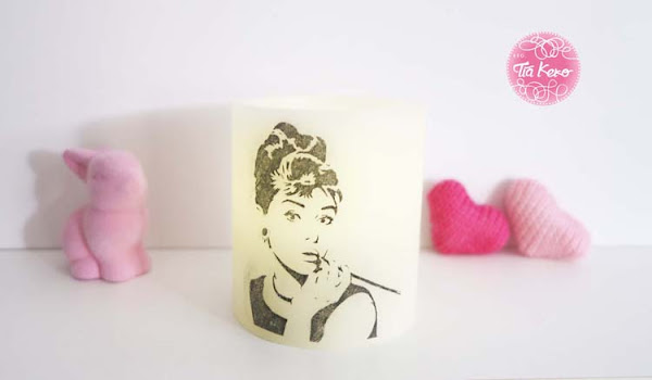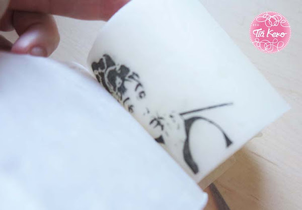 Para transferir una imagen a una vela de forma sencilla, limpia y rápida nada mejor que a través de un papel de clínex, si has leído bien, de clínex. Para ello vamos a seleccionar una imagen que queramos transferir, a nosotras nos encantó la Audrey así que esa elegimos.