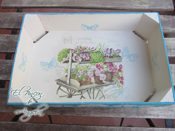 Vamos a reciclar? Otra opcion para reciclar las cajas de fresas. Esta vez, un estilo alegre, shabby chic. Con colores primaverales, flores y mariposas. Una opcion perfecta para reciclar y decorar. No te pierdas como lo hice