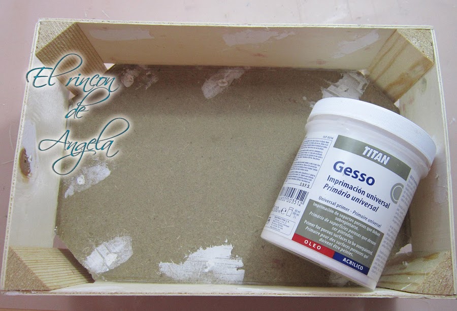 Pintar toda la caja con gesso, imprimación para que no agarre bien la pintura y tape las letras