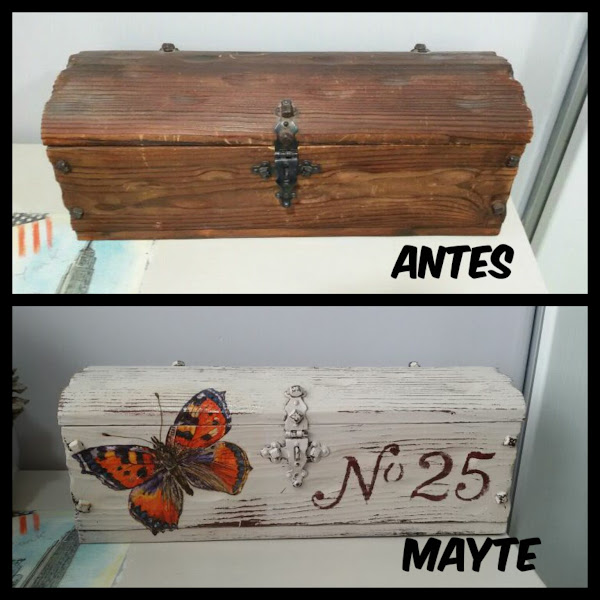 Esta caja de madera la iba a tirar, pero la pinte la rasque, le puse una gran