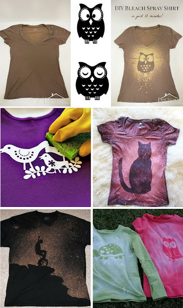 En una botella con spray, vierte el blanqueador, y comienza a rociar sobre la camiseta. Esperar 2 minutos y volver a repetir la operación. Cuando este seco levantamos la plantilla y retiramos el cartón de su interior.
